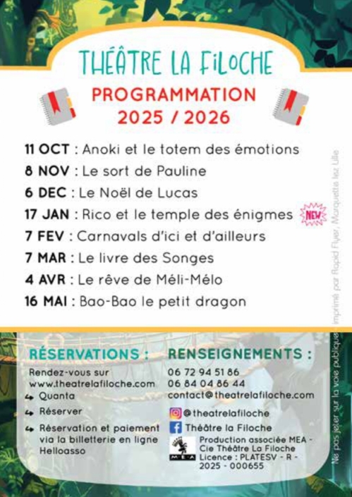 Retrouvez chaque mois le théâtre La Filoche à la ferme Quanta de Villeneuve d’Ascq ! Pour plus d’informations contactez-nous ou retrouvez notre programmation ci-dessous !